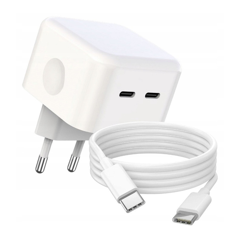 Ładowarka 220V 2X USB TYP-C 35W biała PD XO + kabel USB-C - USB-C