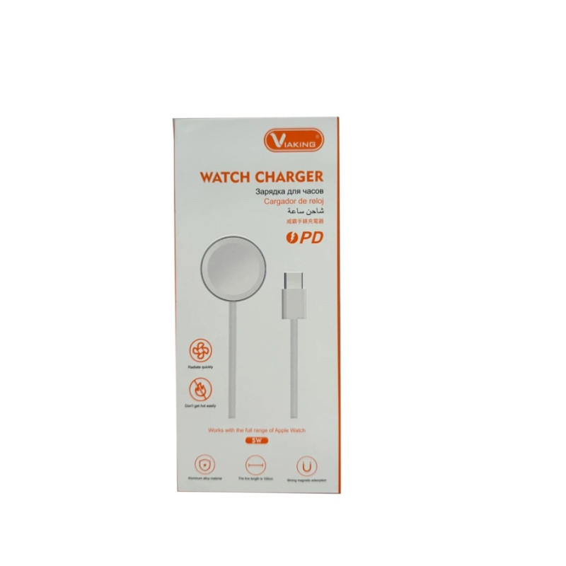 Ładowarka VIAKING do Apple Watch to wygodne i niezawodne rozwiązanie do codziennego ładowania Twojego smartwatcha. Dzięki końcówce magnetycznej i złączu USB-C zapewnia szybkie, stabilne i bezpieczne ładowanie zegarków Apple iWatch wszystkich generacji.