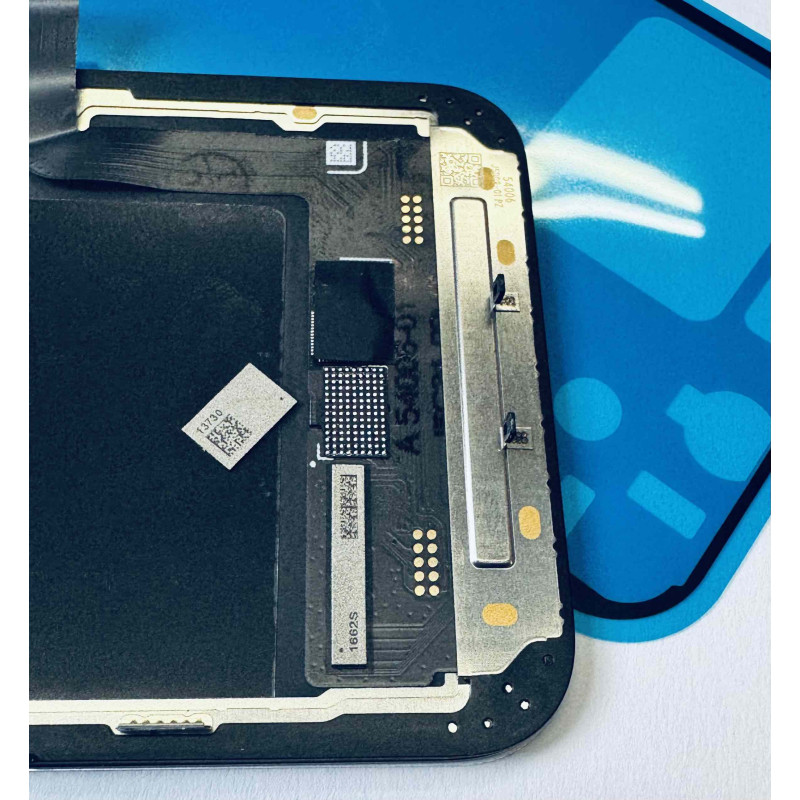Ekran posiada możliwość wlutowania oryginalnego chipa TouchIC z uszkodzonego oryginalnego wyświetlacza (aby pozbyć się komunikatu o wymianie wyświetlacza) , na taśmie znajdują się pola do wlutowania oryginalnego chipa, druga istotna rzecz to możliwość uniesienia taśmy z chipem wysoko w górę co umożliwia swobodne grzanie i wlutowanie oryginalnego chipa.