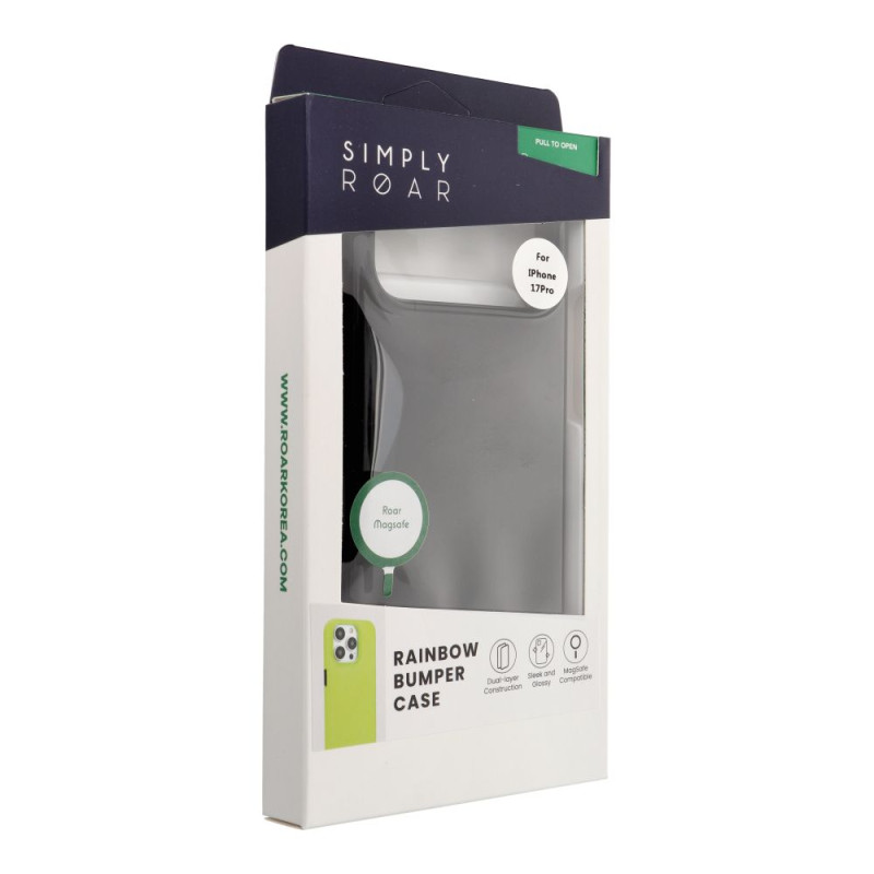 Futerał Roar Rainbow Bumper to eleganczne, dwuwarstwowe etui z pełną kompatybilnością MagSafe. Łączy sztywne plecy z poliwęglanu (PC) i elastyczne wnętrze z TPU, zapewniając skuteczną ochronę telefonu oraz wygodne ładowanie bezprzewodowe i współpracę z akcesoriami magnetycznymi.