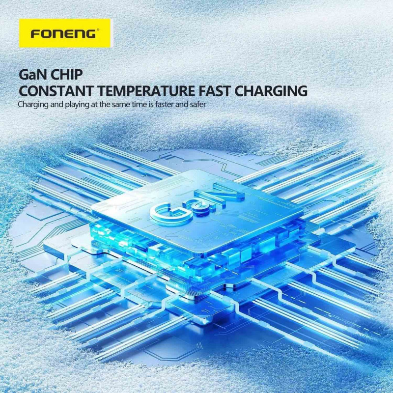 Foneng EU62 wykorzystuje innowacyjną technologię GaN (azotek galu), która zapewnia większą efektywność ładowania przy zmniejszonej emisji ciepła. Dzięki temu ładowarka jest mniejsza, lżejsza, a jednocześnie bardziej wydajna w porównaniu z tradycyjnymi ładowarkami. To rozwiązanie zapewnia nie tylko szybsze ładowanie, ale również dłuższą żywotność urządzeń.
