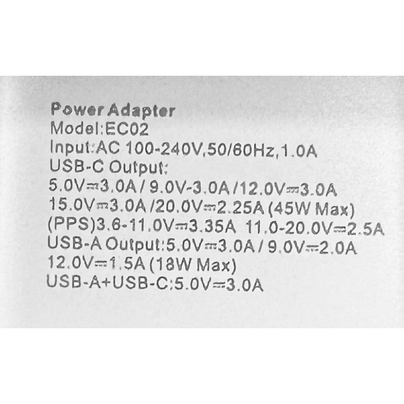 Porty: 1 × USB‑C PD + 1 × USB‑A QC 3.0