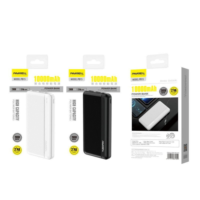 Powerbank Pavareal Bipow o pojemności 10 000 mAh pozwala na ładowanie kilku urządzeń jednocześnie przy maksymalnym natężeniu prądu 2,4 A.