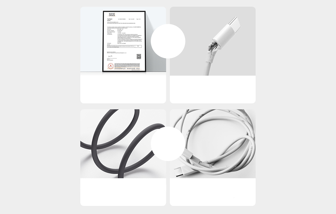 Kabel zabezpieczony został trwałym silikonem, dzięki czemu jest dużo bezpieczniejszy w użytkowaniu niż zwykły kabel gumowy. Akcesorium posiada certyfikat SGS, nie plącze się ani nie pęka oraz jest odporne na smugi. Każdy kto posiadał gumowy kabel od razu zauważy ogromną różnicę.